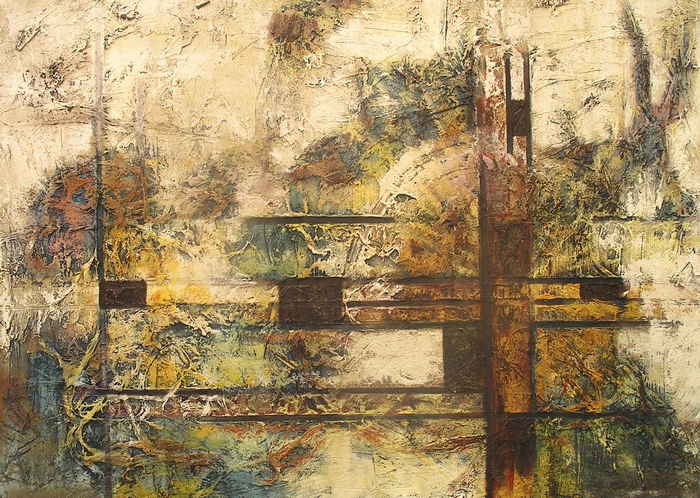 "Fortsetzung" Acrylfarbe auf Leinwand mit Holz ca. 90 cm x 140 cm 2009 |